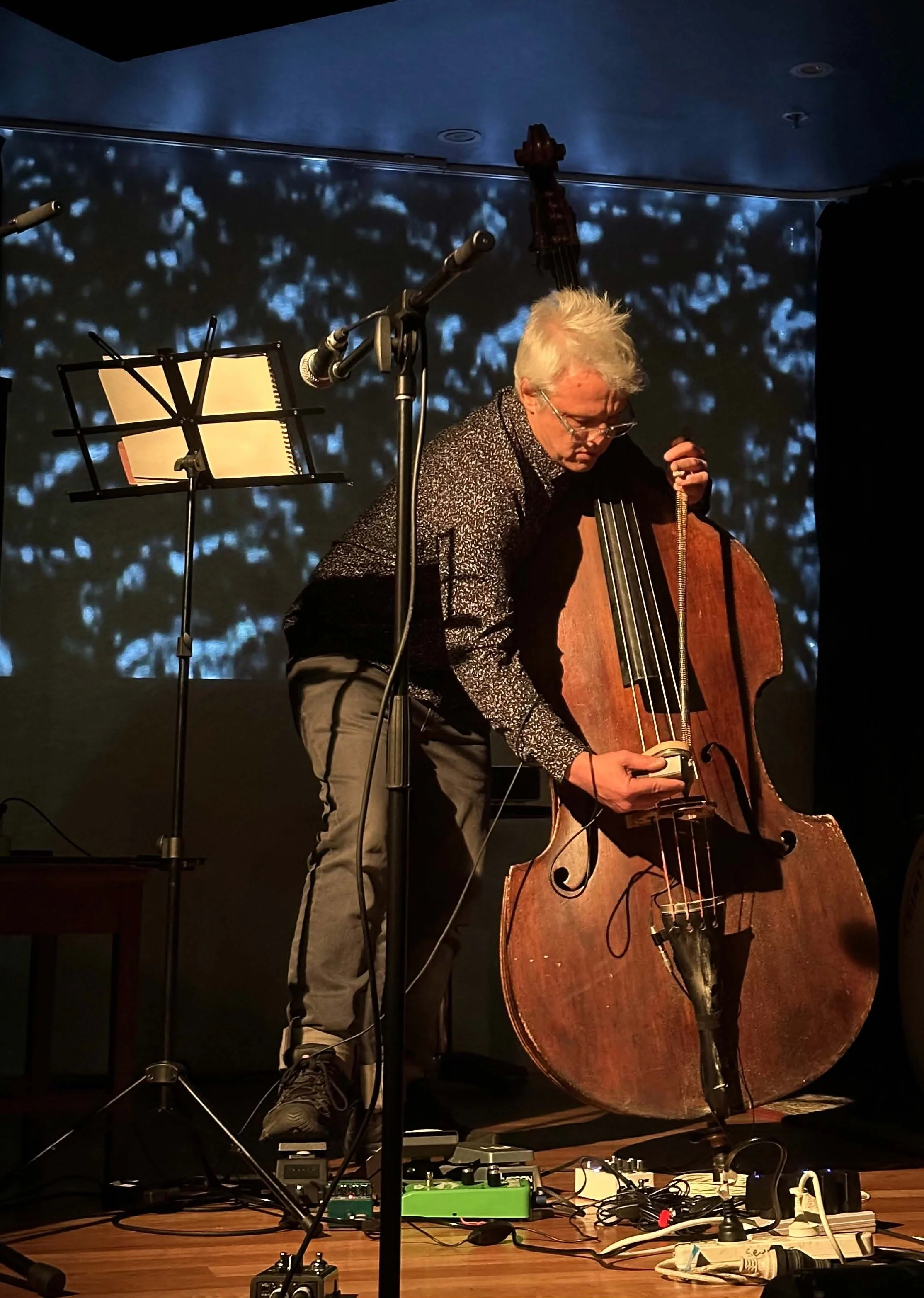 First, let's cover some factual details: Mark Cauvin, as mentioned before, is a double bassist from Australia, but he is also a psychiatric nurse. Although I've never had the opportunity to discuss with him the connections or contributions these two occupations have to each other, they both involve a similar image of "getting to grips with" something, whether it's a human body or an instrument, both of which are substantial and unwieldy (which is why double bassists often refer to their instrument as "the grandmother"). It's about literally taking it on, whether it's the patient or the instrument. For anyone in doubt, I recommend revisiting Joëlle Léandre's "Taxi" – another double bassist who has been grappling with this sonorous beast for years and who embodies a strong and unwavering artistic opinion. Mark is a double bassist but practices in solitude since he doesn't play in groups, contrary to the usual role of a double bassist, which is to be a sideman, an accompanist, the one who "pushes" the soloist throughout the concert before retiring with their massive contraption out of the spotlight. Furthermore, he is rarely heard in those more or less spontaneous duos that seem to be the required way of life for most improvisational double bassists. He most often plays alone, with music he has composed or improvised, or as a solo performer (in the original sense, without accompaniment) of pieces composed by others, such as Cat Hope's excellent solo double bass piece "Dynamic Architecture I." However, he collaborates with artists from other disciplines, such as dance or drawing. This solitary position is well illustrated by his new album, "Compositions, Interpretations, and Improvisations," which contains two compositions by Mark Cauvin, two improvisations, and two pieces by recognized composers who passed away not too long ago, Karlheinz Stockhausen (1928-2007) and Bogusław Schaeffer (1929-2019). His first composition, "Triptych for Double Bass with Electronics," which starts with a noise that Merzbow would not disown, was originally conceived as a concerto. However, Cauvin decided to replace the orchestral accompaniment with the digital projection of drawings created in real-time by visual artist Jody Graham – who, of course, cannot be heard on the album but forms a true duo with the double bassist, "Sound Drawings." What you hear is a mixture of textures, layers of sound, an instrument often impossible to recognize, which could best be described as a blend of acoustic (the warmth of the wood mentioned earlier) and electronic – all created with incredibly limited means, barely two or three guitar pedals, no post-production editing, no fancy electronic processing. What is also evident is an incredible physical energy: you almost feel like you can see the musician in a trance right in front of you. His other composition, "Tape Piece for Double Bass, Noises, and Electronics," is almost the exact opposite: a recording on magnetic tape that has been cut into different lengths and then reassembled, in a different order, of course, creating another continuity. The process, as well as the result, is very acousmatic, very early electronics, immediately reminiscent of the "young Stockhausen," the one who composed his first electronic study in 1953 in a similar way – but with much more precise calculations of pitch and duration ratios (and therefore the lengths of the various tape segments): his Study 1 is often referred to as the "study of a thousand splices." But we will return to the relationship between Cauvin and Stockhausen a little later. The two improvisations, which are formally in the same waters, textures, and densities as his compositions, both focus on the other instrument of the double bass, the bow (yes, many musicians and luthiers indeed consider the bow as a separate instrument, although it is part of the instrument to which they are intended, an example of divided unity, like siamese twins, perhaps). Or rather, they revolve around variations of the bow: in "Motor Bow," it's a mechanical bow with an electric motor, thus an "infinite" bow, created by the maker of experimental instruments, Léo Maurel, which sets off like an earthquake, a long rumble accompanied by high-pitched squeaks – while the bow in "Zip Bow," whose recording comes from an improvisation with Jody Graham, is an invention of Mark himself, who attached a zipper to a bow instead of the usual horsehair bundle. The idea came to him while playing with the zipper on his backpack (zippers and backpacks are also present in the basic materials of "Tape Piece for Double Bass, Noises, and Electronics"). As he himself puts it, the bite that the zipper inflicts on the strings of the instrument is ruthless and damaging to the strings, which cost about 500 Australian dollars, but it produces a unique sound, a sound that is also at the core of the duo with Jody Graham that they titled "Song of the Zip." That covers Mark Cauvin's contributions to the album "Compositions, Interpretations, and Improvisations." Now, let's talk about the other compositions and interpretations, those by Karlheinz Stockhausen and Bogusław Schaeffer: "In Freundschaft" (1977) by the former and the first movement of the "Electronic Symphony" (1969) by the latter. Certainly, just a few years ago, seeing compositions and improvisations focused more on noise than on notes, along with interpretations of composers such as Stockhausen (whom I consider one of the most important of the 20th century, or at least in the top three or five), would have filled me with joy – the joy of seeing these musics being (finally) treated as equals. However, here, the contrast is less favorable: as soon as we enter these two pieces, it feels like a change in light or era, as if we're transported to the past, into a different definition of music perhaps. This is more noticeable in "In Freundschaft" (and it's the first time I've found a Stockhausen composition to sou